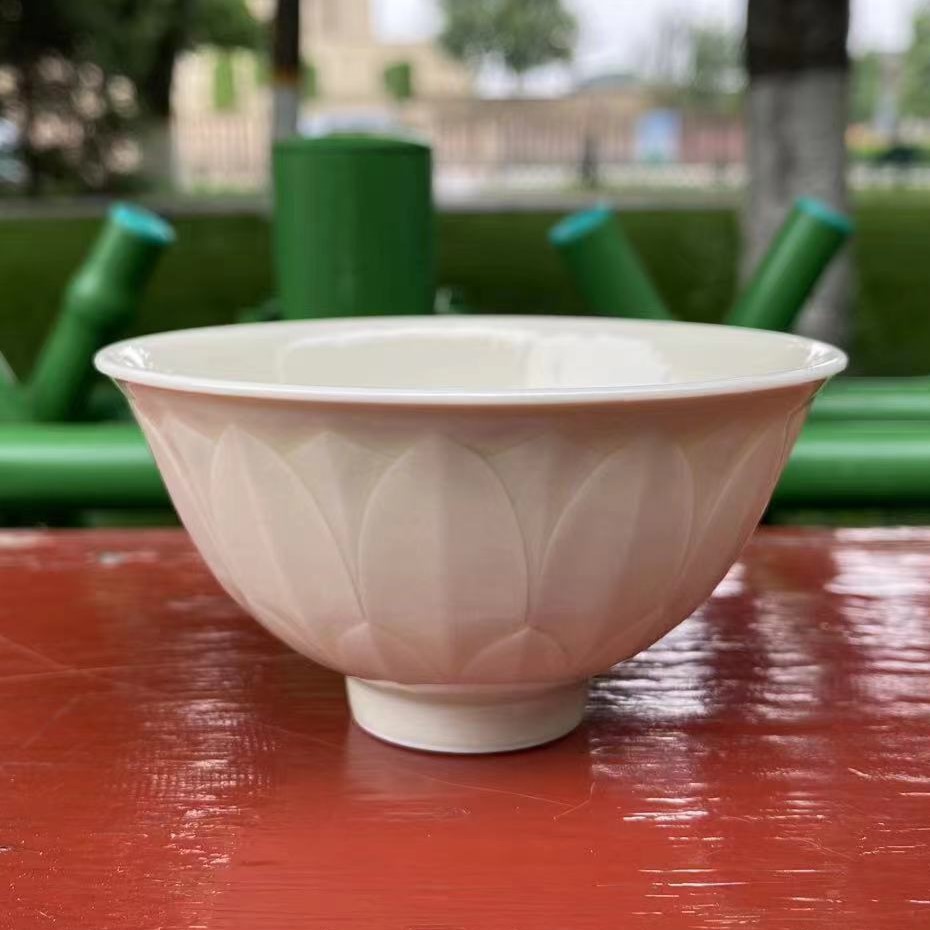 定窯瓷器,若從窯址發(fā)現(xiàn)遺物來看,始燒年代可以追溯到南北朝時期,最晚到明宣德年間,定窯仍有生產(chǎn),定窯的發(fā)展過程,大致分為五個階段。 第一階段是南北朝到唐代早期,這階段定窯的主要產(chǎn)品是北方青瓷,到了這一階段末期,黃釉粗灰胎瓷其成為主流。 第二階段是唐代中期,這一階段,定窯出現(xiàn)粗白瓷,燒造方法出現(xiàn)支燒,器形以餅足尖唇碗居多,胎色灰白,多施化妝土。 第三階段是唐代晚期到北宋早期,這一階段是定窯白瓷的成熟期